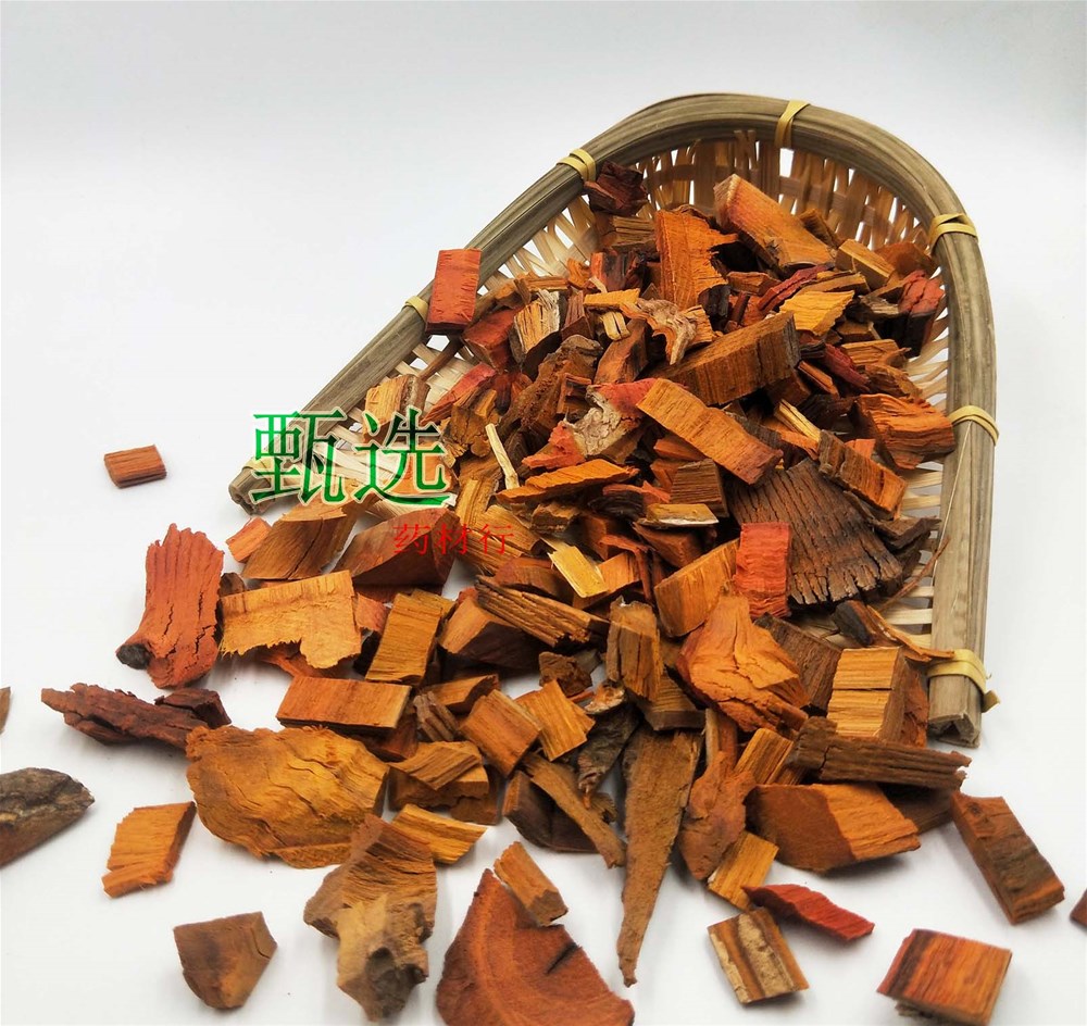 产品描述:本品为苏木统货,无硫,呈刀块状,片块形状不规则,表面暗棕色或黄棕色,可见红黄色相间的纵走条纹,有刀削痕及细小的凹入油孔
